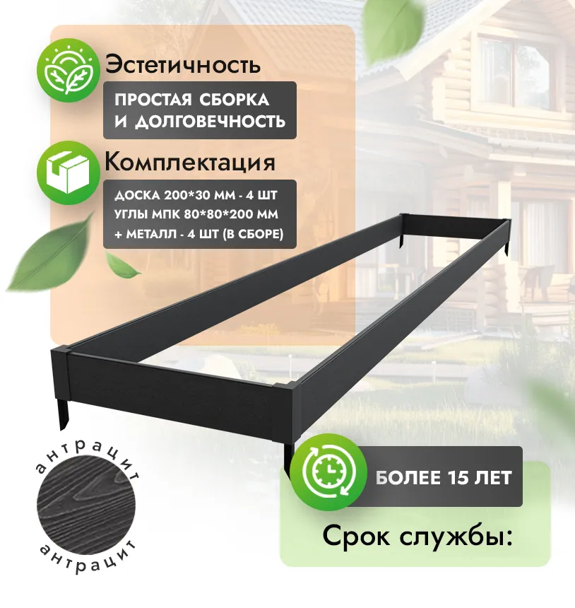 Срок службы грядочной доски и изделий из ДПК не менее 15 лет. В течение 3 лет гарантия: вернем деньги или заменим товар.